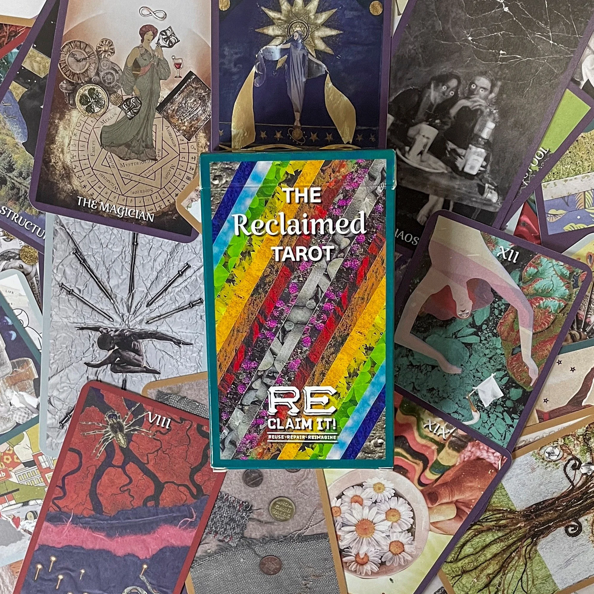 In October 2023, a small group of folks embarked on a 5-week Tarot Workshop Series to unveil tarot symbolism & create a one-of-a-kind deck from salvaged materials!